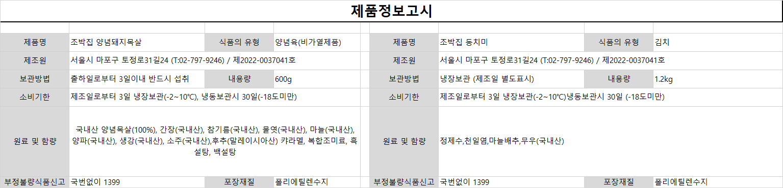 조박집에서 직접 운영하는 온라인몰에서